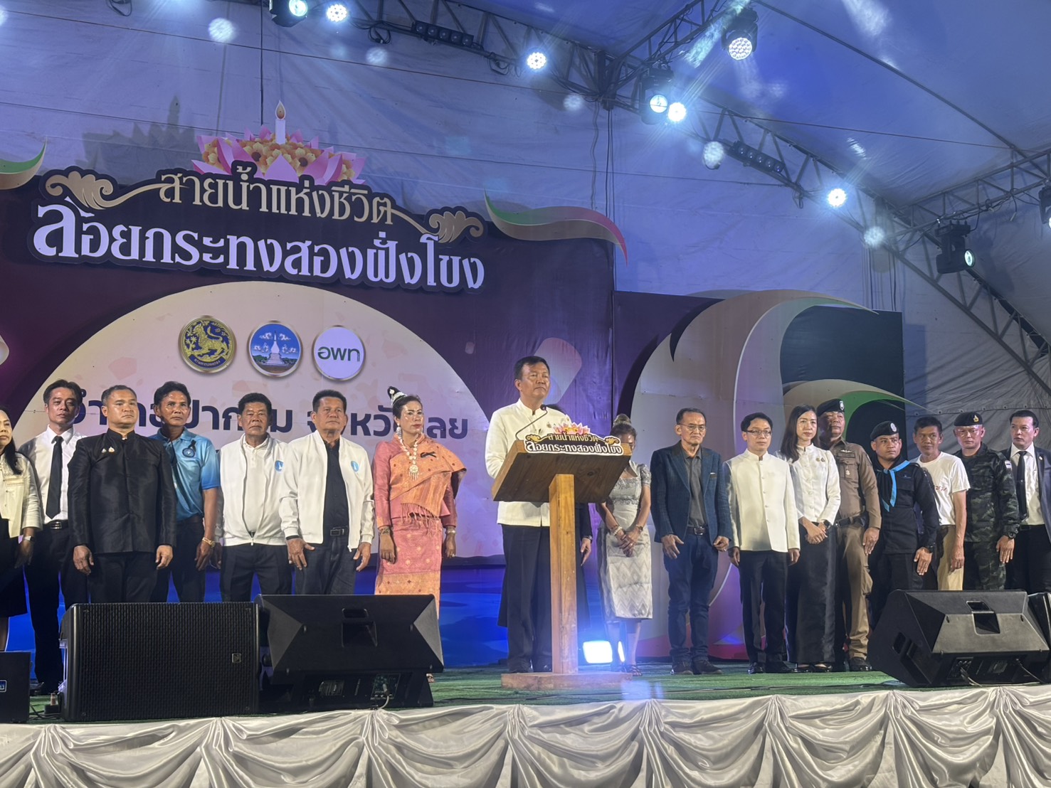 เมื่อวันที่ 5 พฤศจิกายน 2568 สำนักงานพื้นที่พิเศษเพื่อการท่องเที่ยวอย่างยั่งยืนเลย (อพท.เลย) โดยนายธรรมนูญ ภาคธูป ผู้จัดการสำนักงานพื้นที่พิเศษเพื่อการท่องเที่ยวอย่างยั่งยืนเลย มอบหมายให้นายศราวุธ กลันทะกะสุวรรณ รองผู้จัดการสำนักงานพื้นที่พิเศษเพื่อการท่องเที่ยวอย่างยั่งยืนเลย เข้าร่วม เปิดงานเทศกาลลอยกระทง “สายน้ำแห่งชีวิต ลอยกระทงสองฝั่งโขง” ประจำปี 2568 ณ เวทีกลางสนามหน้าที่ว่าการอำเภอปากชม จังหวัดเลย