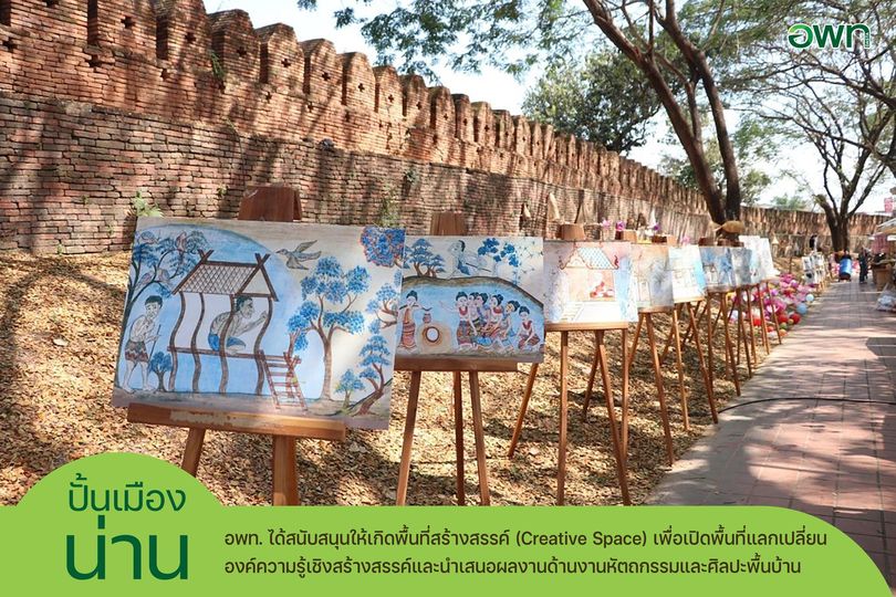 อพท. ได้สนับสนุนให้เกิดพื้นที่สร้างสรรค์ (Creative Space) เพื่อเปิดพื้นที่แลกเปลี่ยนองค์ความรู้เชิงสร้างสรรค์และนำเสนอผลงานด้านงานหัตถกรรมและศิลปะพื้นบ้านจังหวัดน่าน ส่งเสริมให้ศิลปิน ผู้ประกอบการงานหัตถกรรมในพื้นที่จังหวัดน่าน ได้มีพื้นที่ในการจัดแสดงผลงานและนำเสนอขายสินค้าหัตถกรรมท้องถิ่น เกิดการพัฒนาทักษะบุคลากรเชิงสร้างสรรค์ที่เกี่ยวข้องกับศิลปวัฒนธรรมท้องถิ่นเมืองน่านและหัตถกรรมพื้นบ้าน