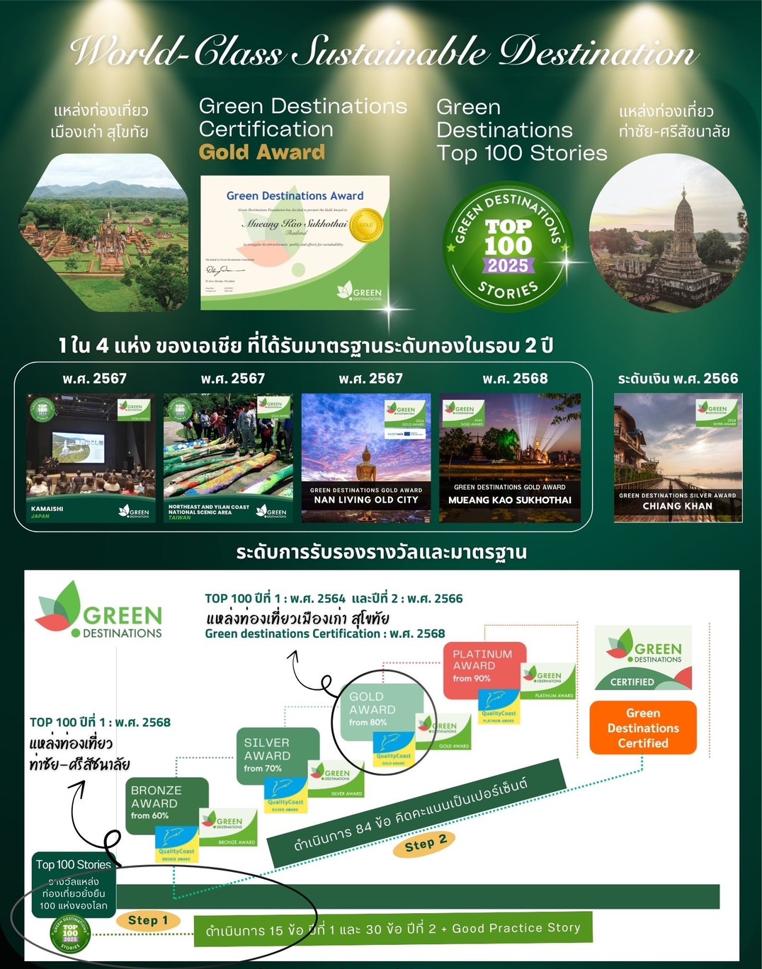 เมืองเก่าสุโขทัยคว้า Gold Award มาตรฐานท่องเที่ยวยั่งยืนระดับโลก