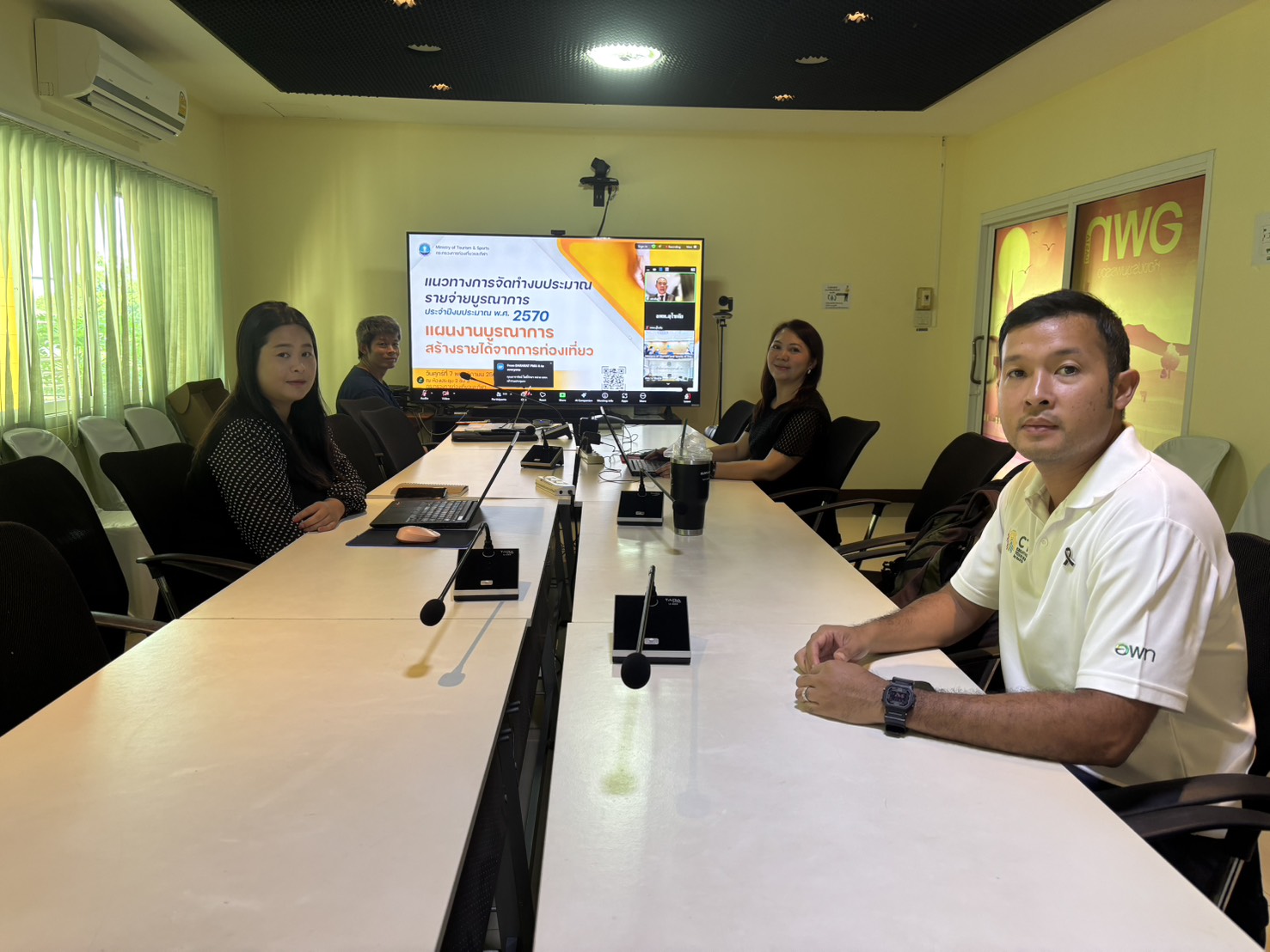 วันศุกร์ที่ 7 พฤศจิกายน พ.ศ. 2568 เวลา 09.00 น. พันเอก นาวิน ปรีชาพณิชยกุล ผจก.อพท.สุโขทัย มอบหมายให้ นายสิทธิพันธ์ แสงสุวรรณ ปฏิบัติหน้าที่ ผู้อำนวยการฝ่ายปฏฺิบัติการ อพท.สุโขทัย และเจ้าหน้าที่ อพท.สุโขทัย เข้าร่วมการประชุมชี้แจงแนวทางการจัดทำงบประมาณรายจ่ายบูรณาการ ประจำปีงบประมาณ พ.ศ. 2570 แผนบูรณาการสร้างรายได้จากการท่องเที่ยว ผ่านระบบออนไลน์ ณ สำนักงาน อพท.สุโขทัย