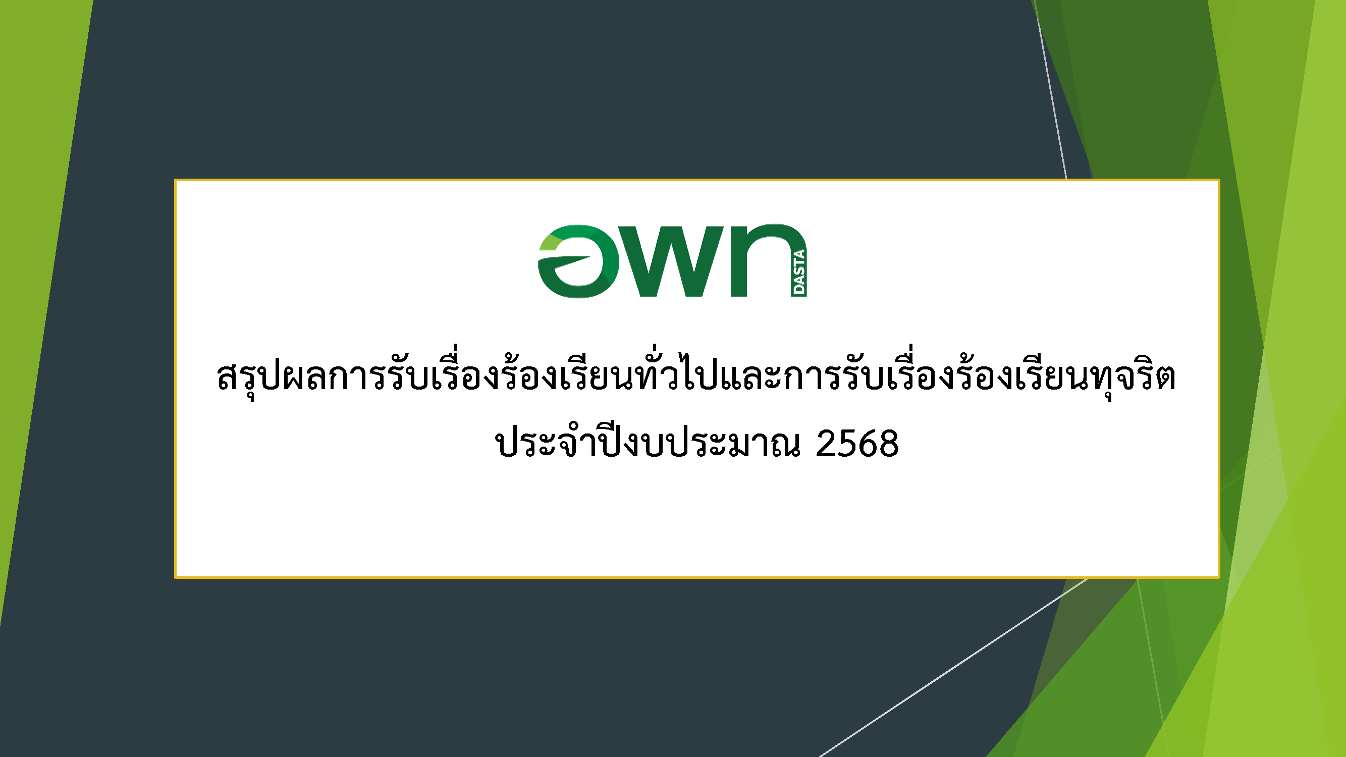 ดาวน์โหลดเอกสาร >> สรุปผลการรับเรื่องร้องเรียนทั่วไปและการรับเรื่องร้องเรียนทุจริต ประจำปีงบประมาณ 2568